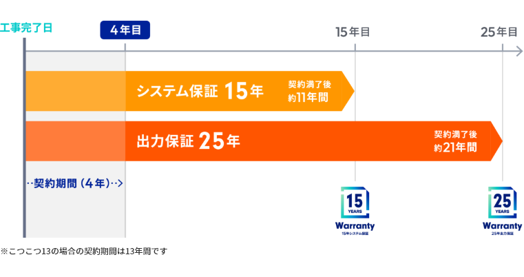 契約満了後も太陽電池モジュール出力保証とシステム保証はそのまま継続されるため