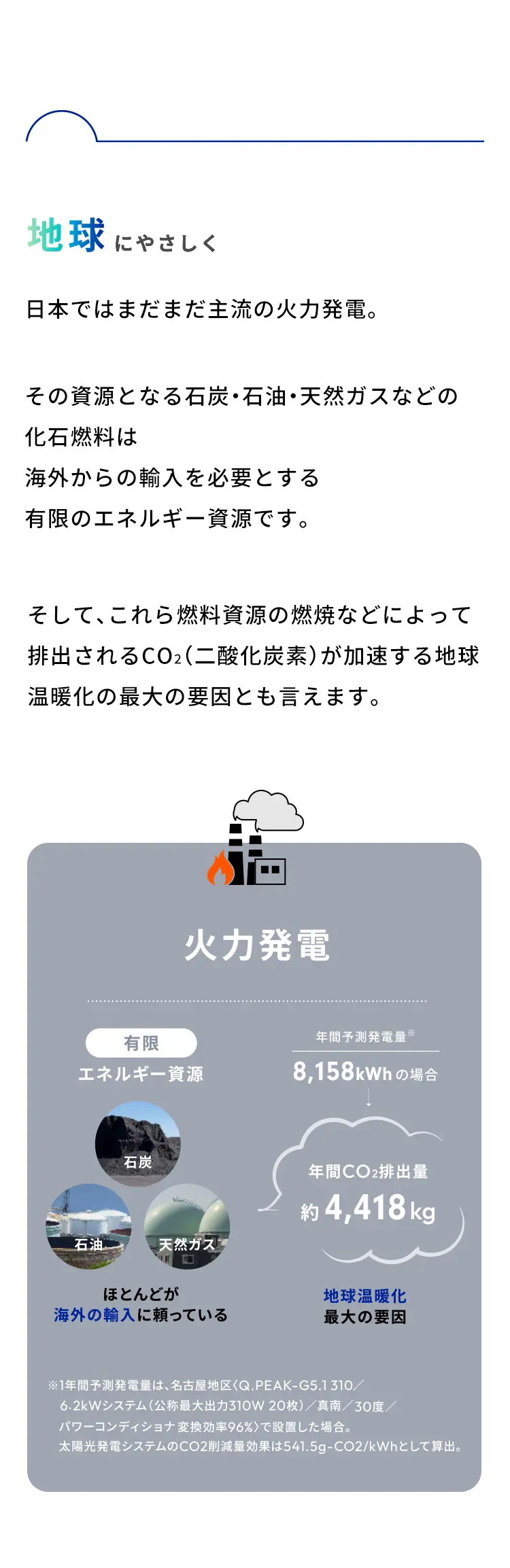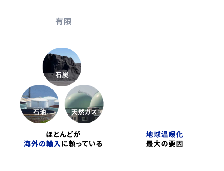 そして、これら燃料資源の燃焼などによって排出されるCO2(二酸化炭素)が加速する地球環境温暖化の最大の要因とも言えます。