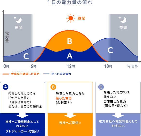お客様が工事費を除くシステム使用料を信販会社と太陽光発電システム機器購入のための「割賦契約※」を締結していただき、当社が割賦支払い分の相当額をシステム貸借料としてお客様にお支払いします。当社が、割賦契約における支払額をシステム貸借料として、お客様に全額お支払いすることで、契約期間を4年で導入いただけます。